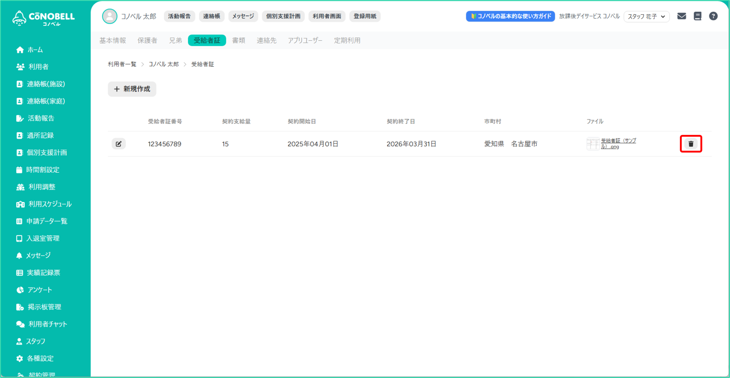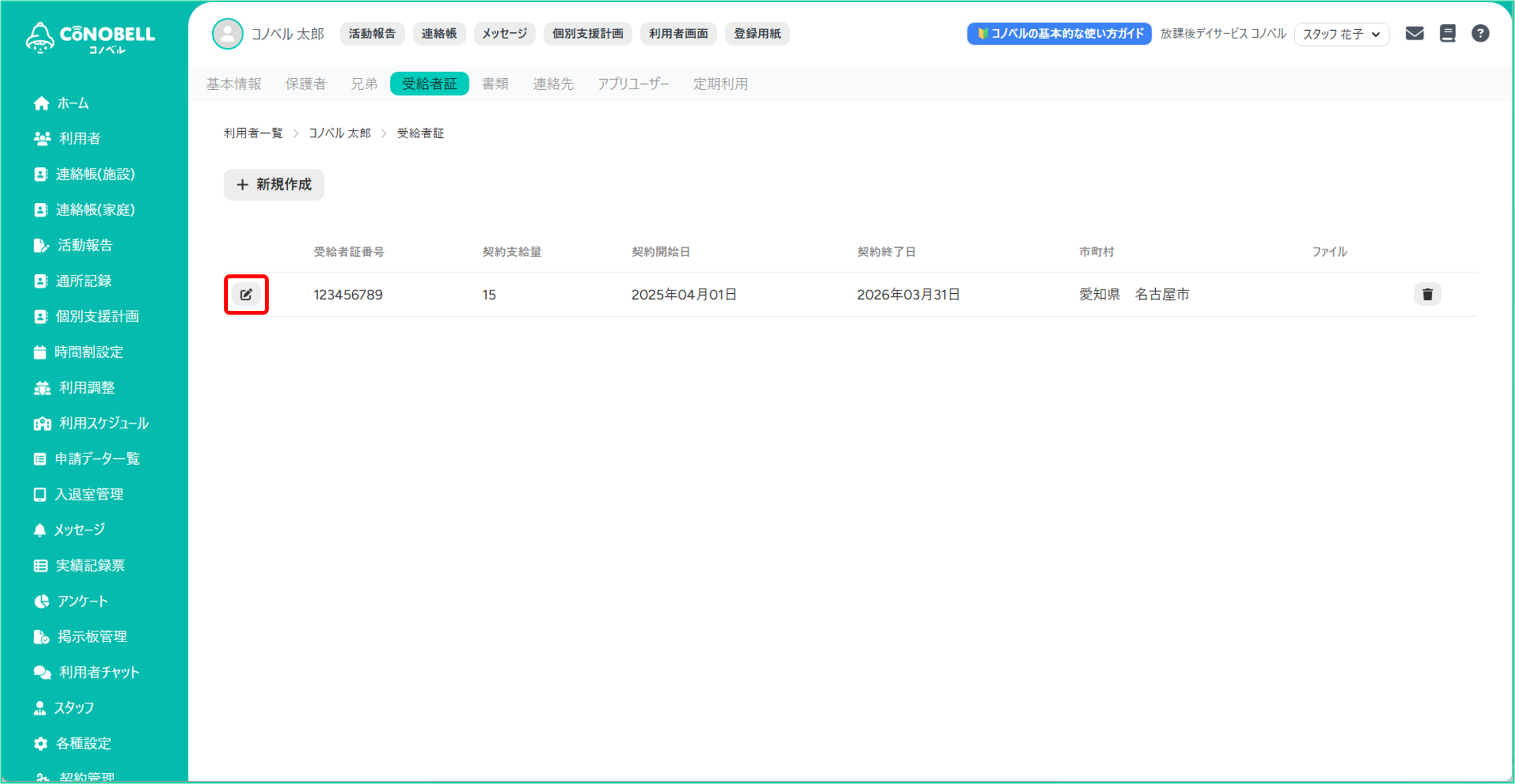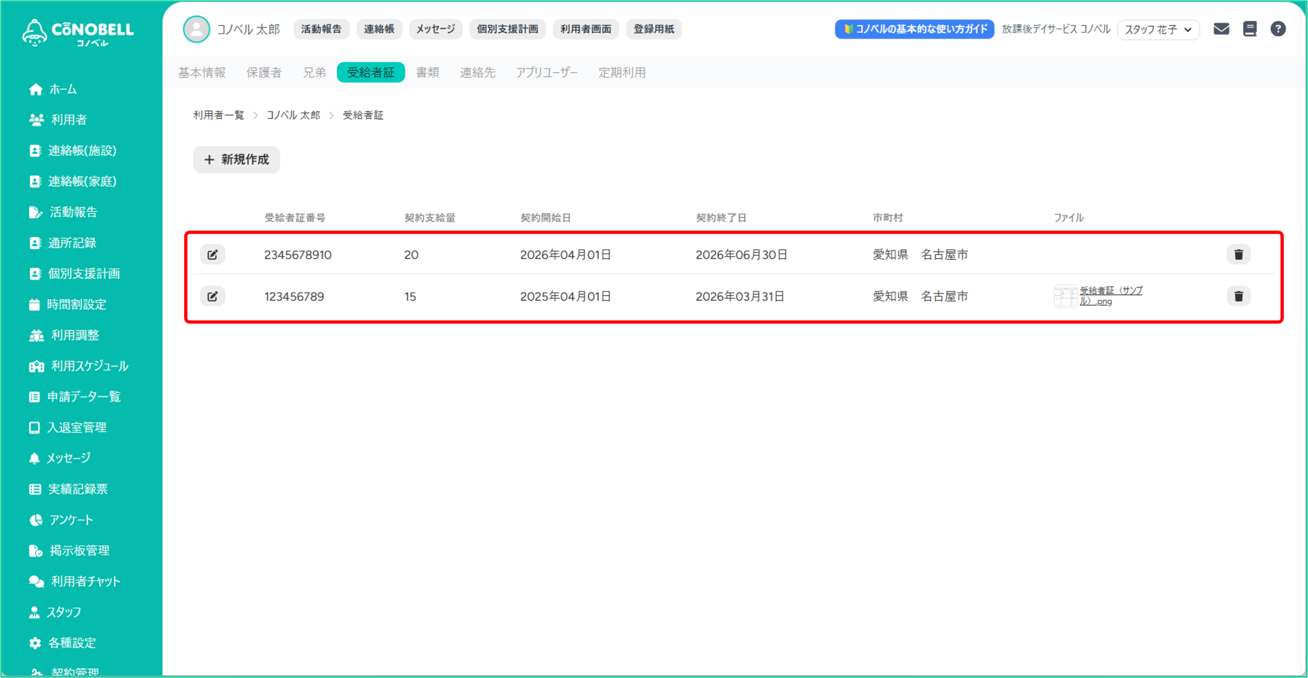 利用者の受給者証の情報を管理できる機能です。