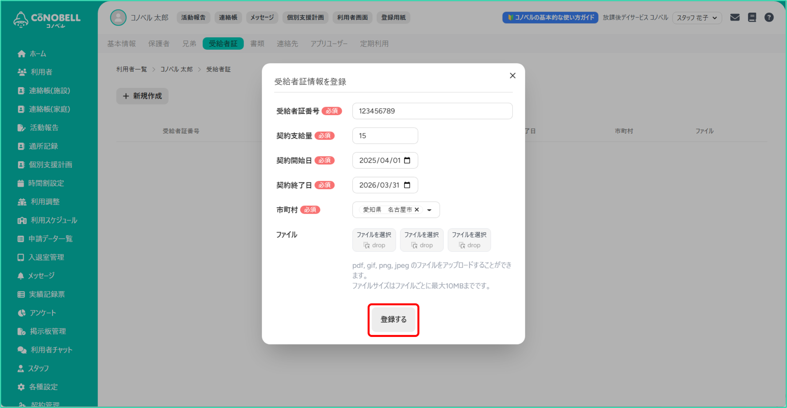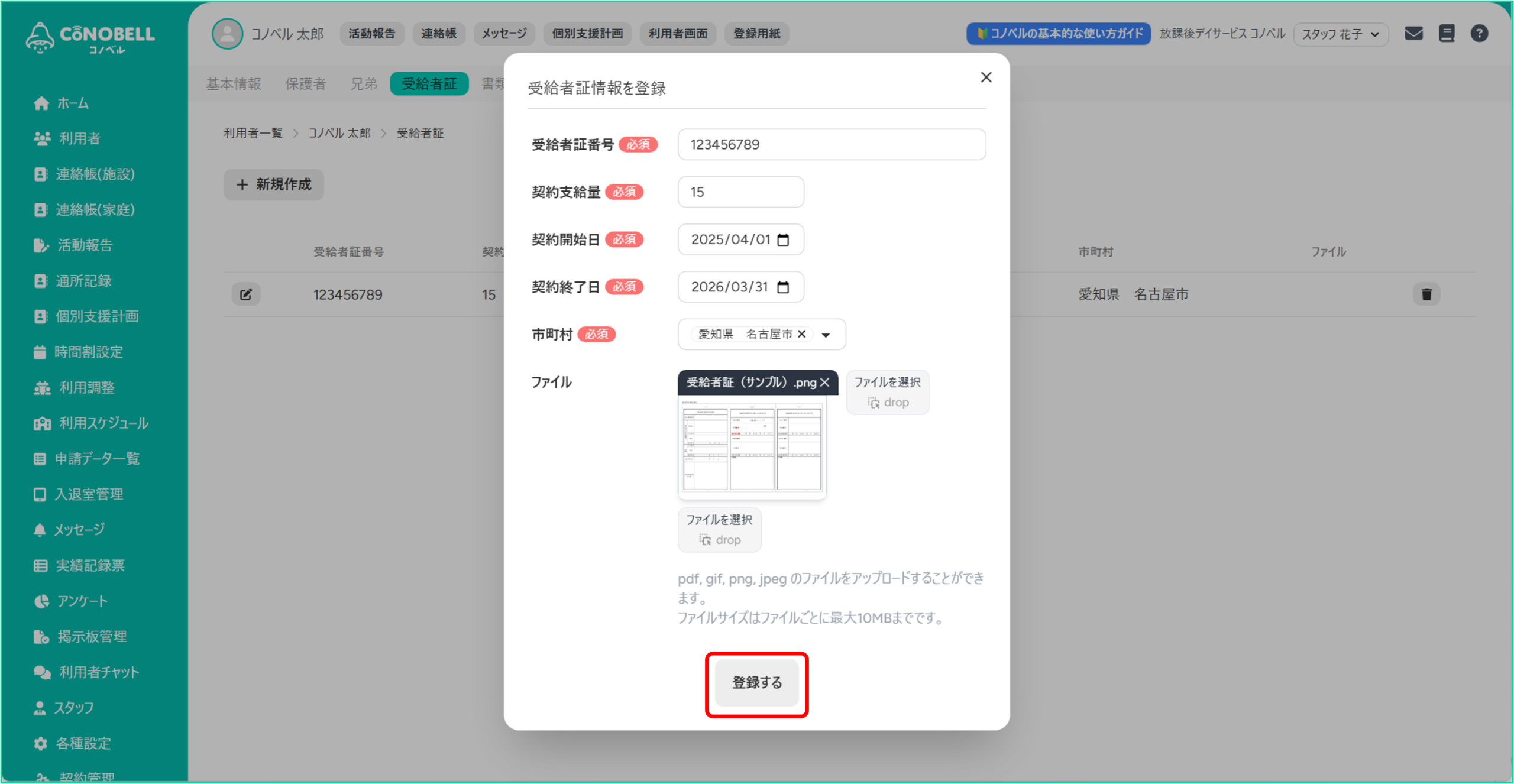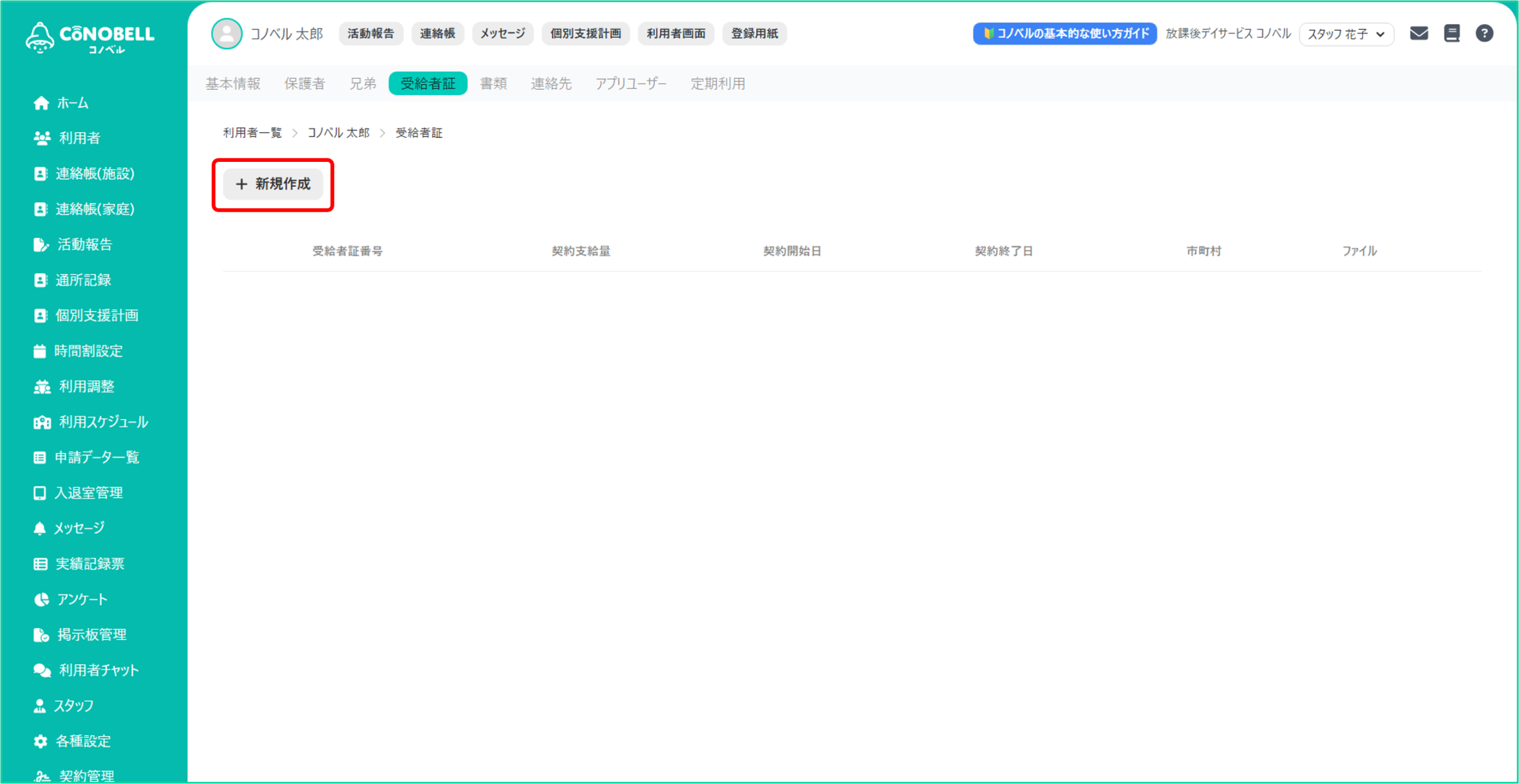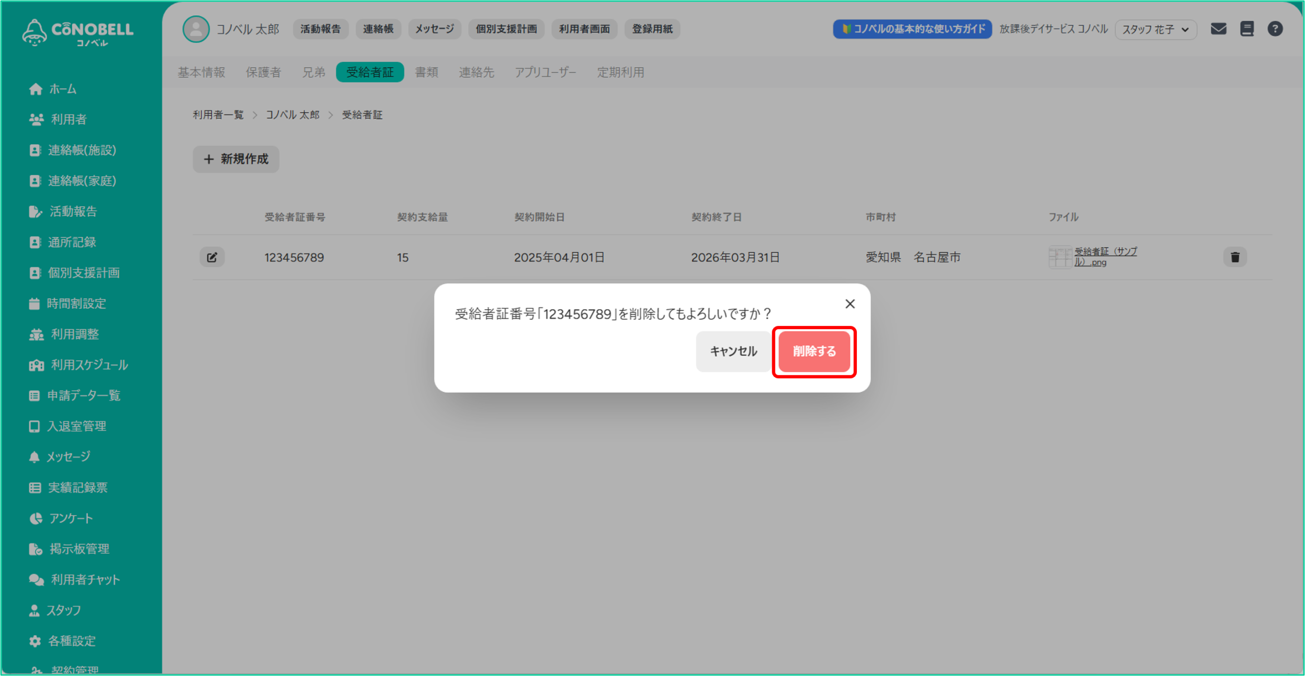 利用者の受給者証の情報を管理できる機能です。