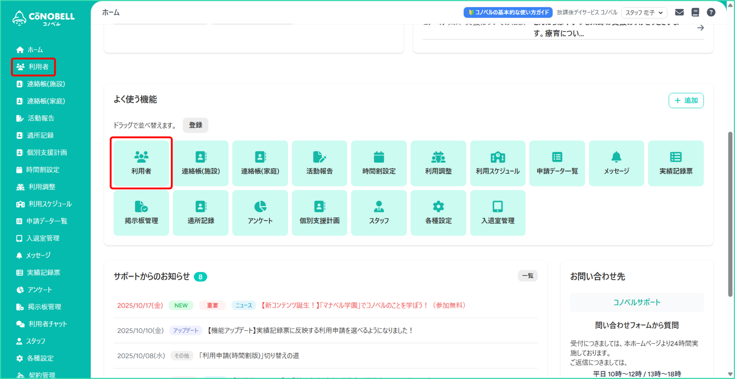 ※尚、サポートセンターへのお問い合わせは、コノベリストプラン(有料)をご契約いただいている施設様のみご利用可能でございますので、予めご了承ください。