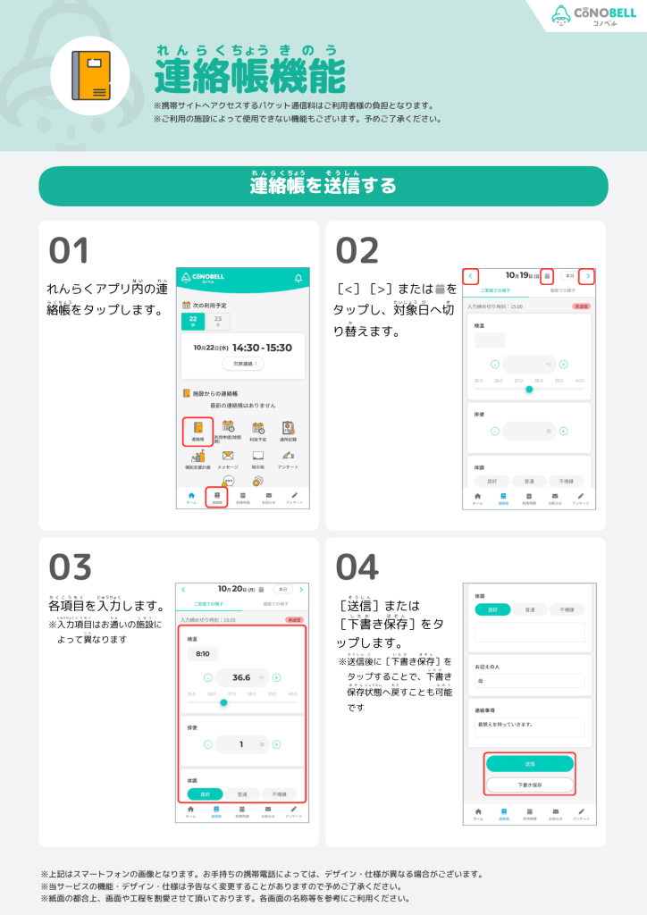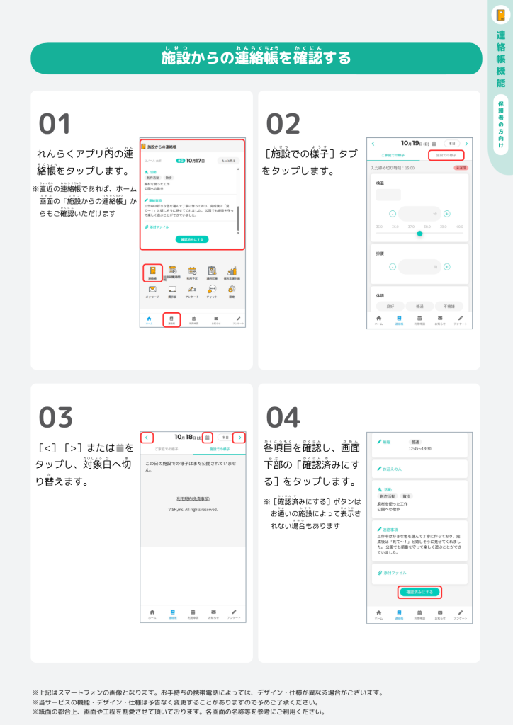このマニュアルでは、れんらくアプリでの連絡帳の操作方法について説明します。