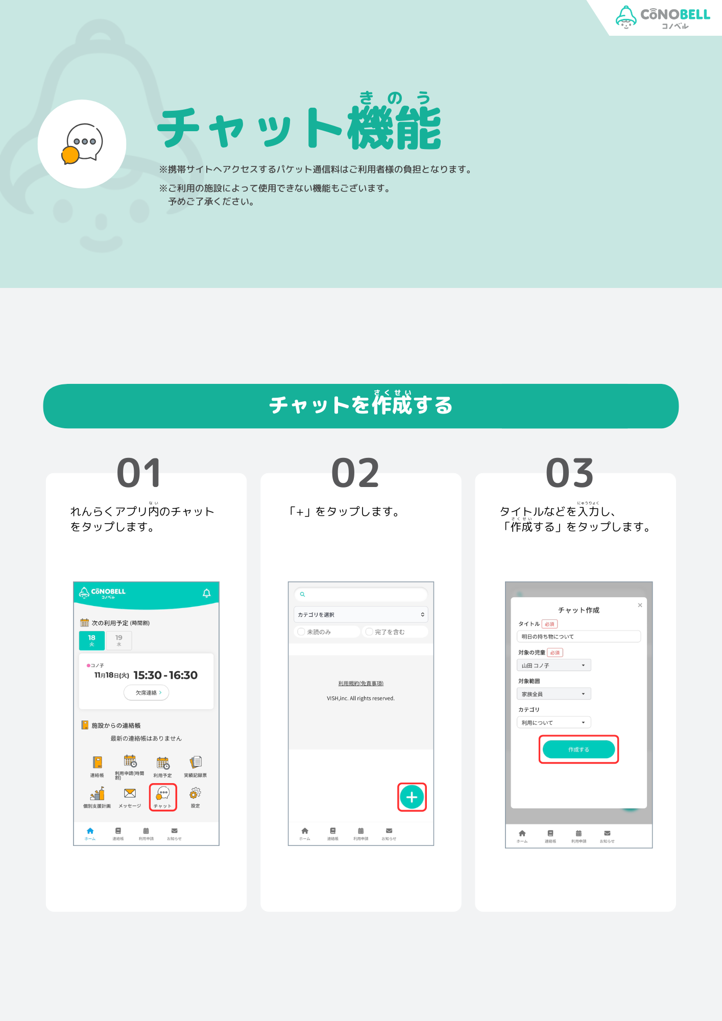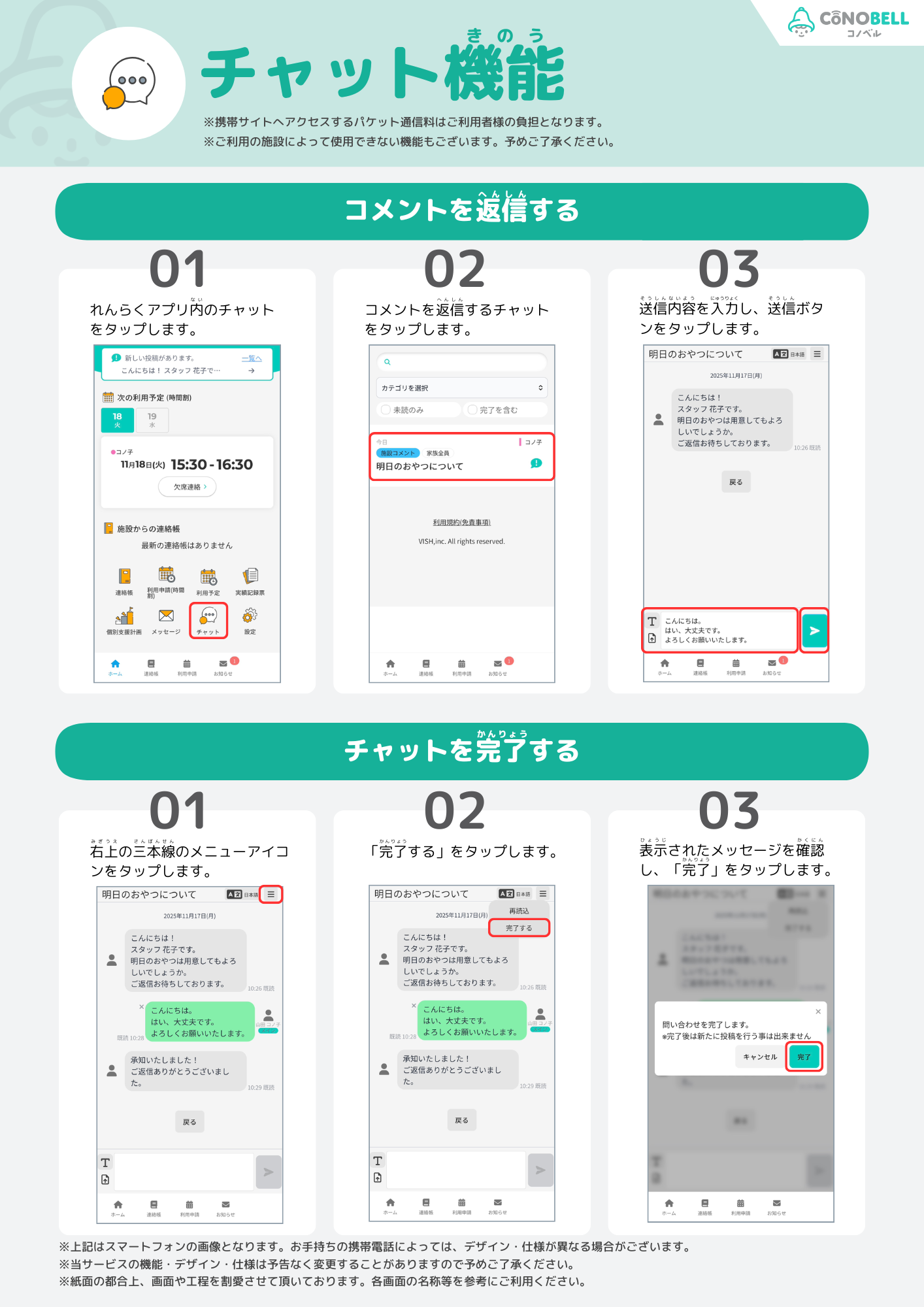 各種機能>利用者チャットの設定画面の「保護者からの開始」の設定値に合わせて、配布するマニュアルをお選びください。