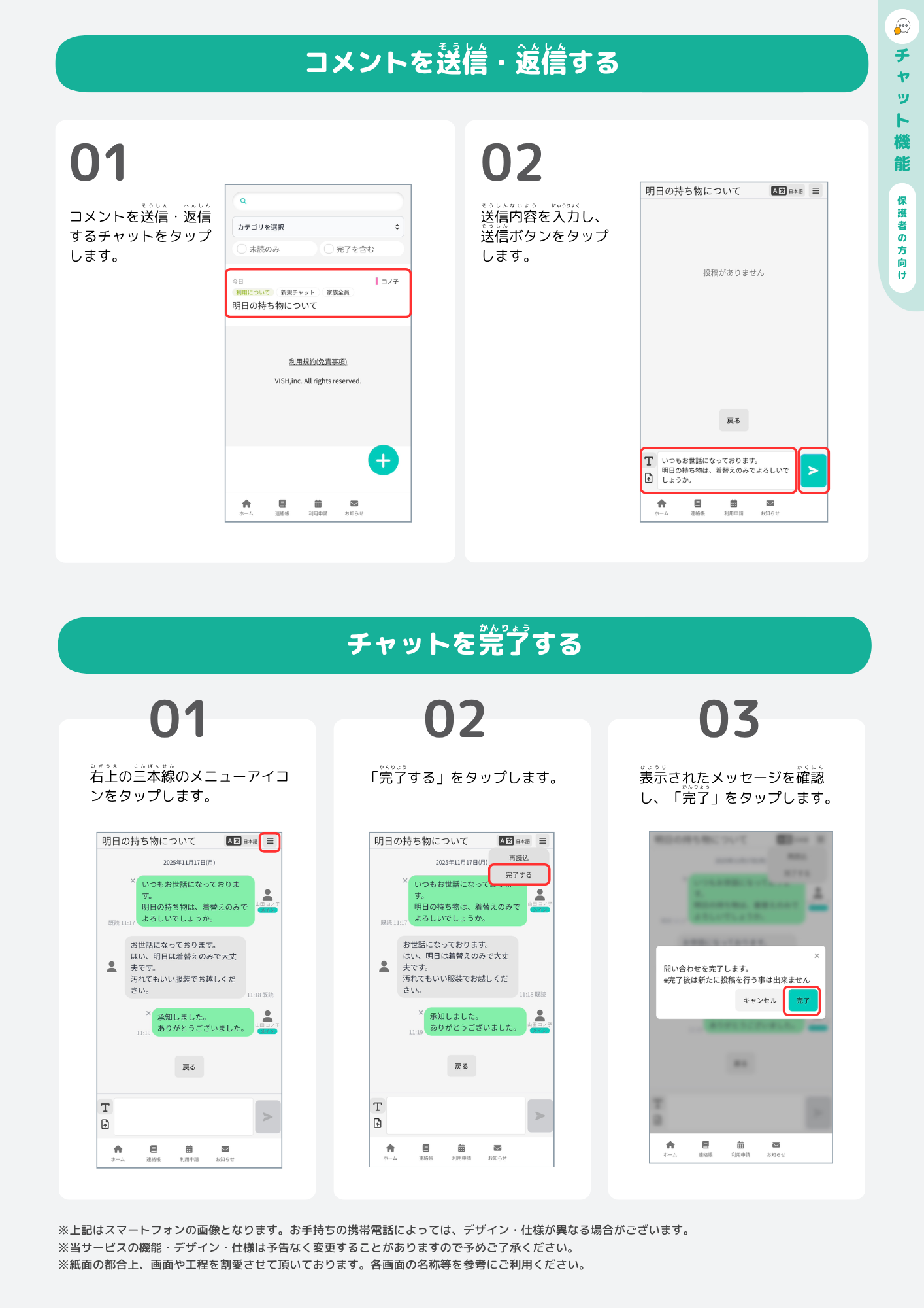 1.保護者アプリ チャット操作方法(保護者からの開始:使用しない ver.)