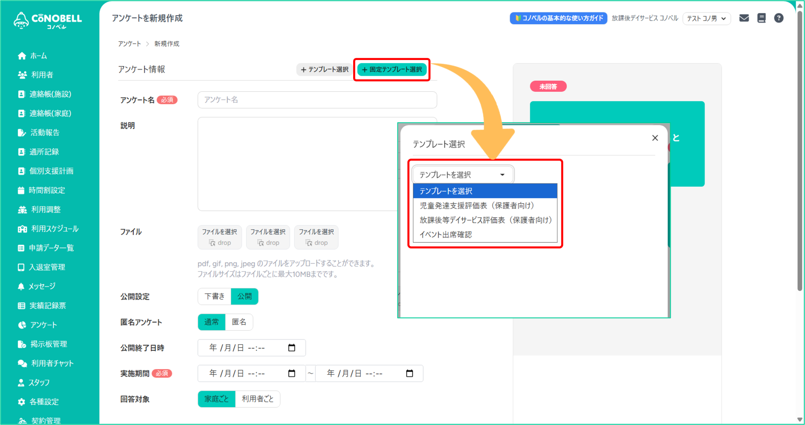 4.固定テンプレートからアンケートを作成
