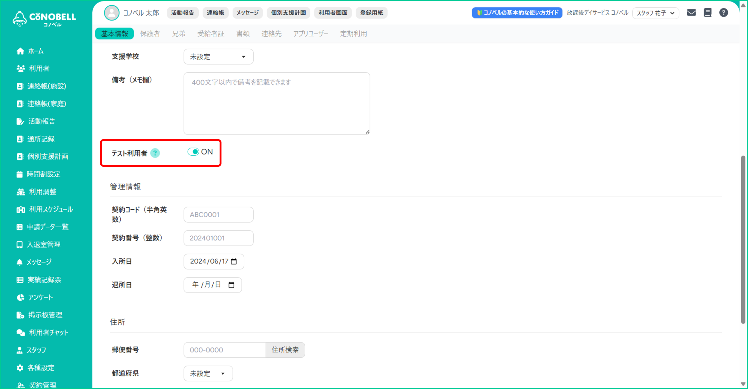 テスト利用者に設定すると、各種設定の「保護者機能公開設定」で“使用しない”にしている機能も、保護者アプリ上で表示されるようになるため、保護者公開前の機能をテスト的に利用できるようになります。